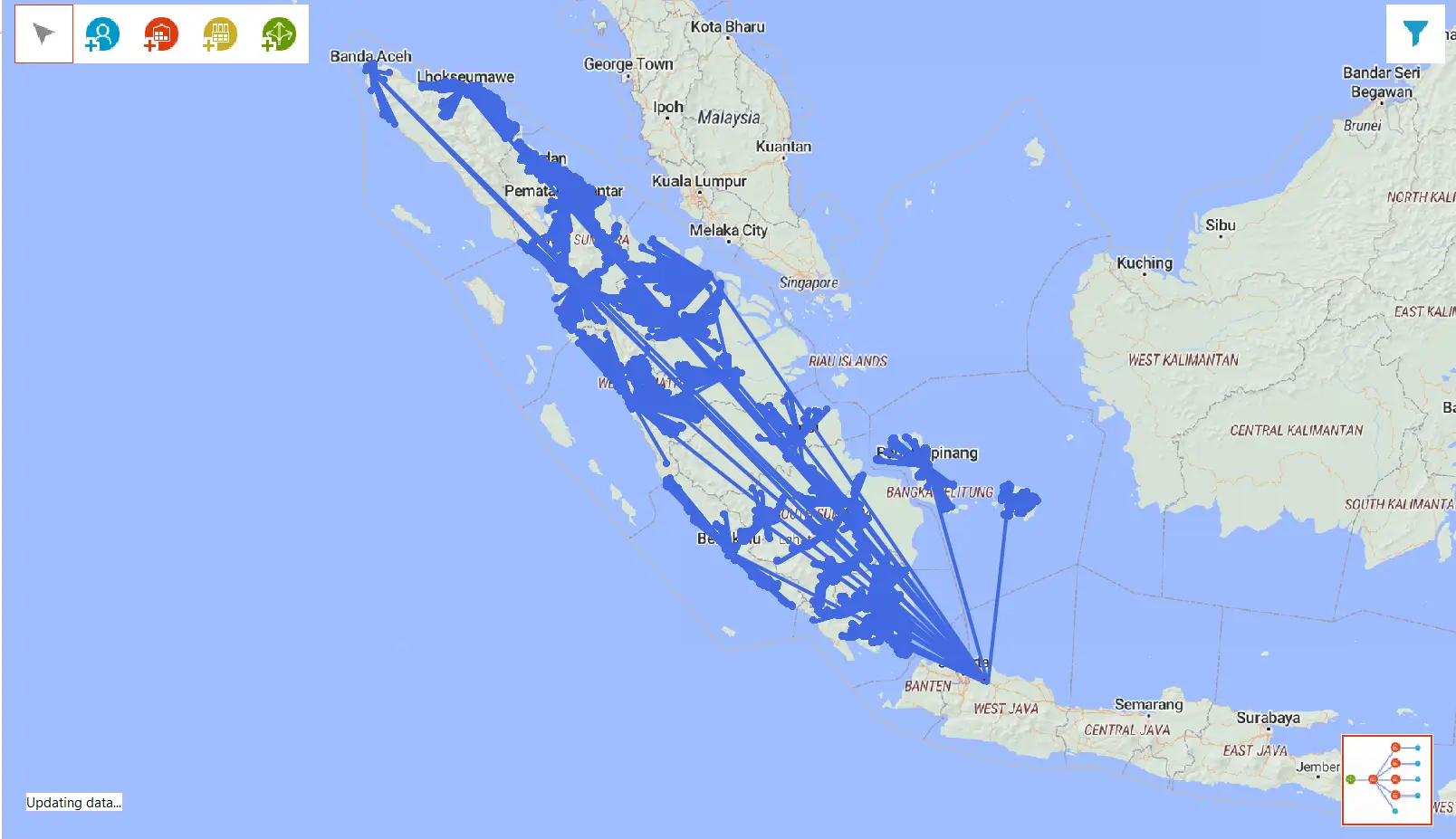 The baseline model took advantage of anyLogistix’s support for detailed, large-scale network simulations. All told, it accounted for 60,000 sites within the modeled region of South East Asia where the company purchases, manufactures and markets goods. anyLogistix naturally fits for creating large-scale network models, and the consultants benefited from this opportunity.