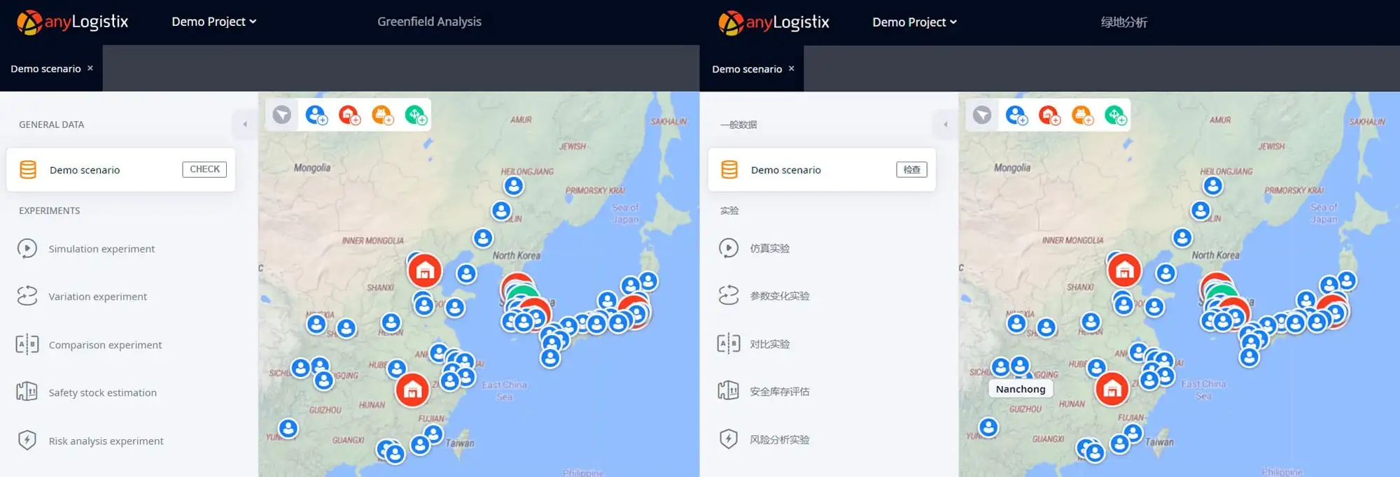 anyLogistix 3.0 in English and Chinese (click to enlarge)