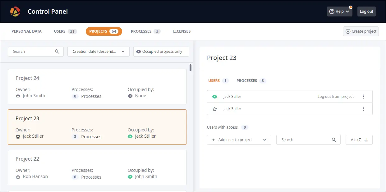 From the Control Panel, teams can see all active projects, monitor running experiments, and manage who has access to what.